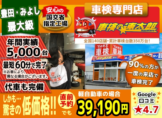 豊田みよしの格安車検3.9万!豊田みよしで車検年4千台