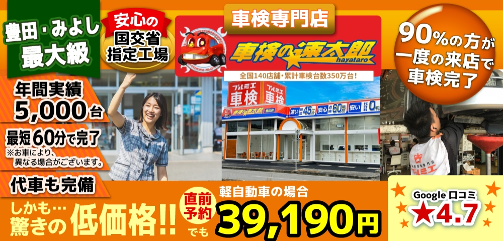 豊田みよしの格安車検3.9万!豊田みよしで車検年4千台